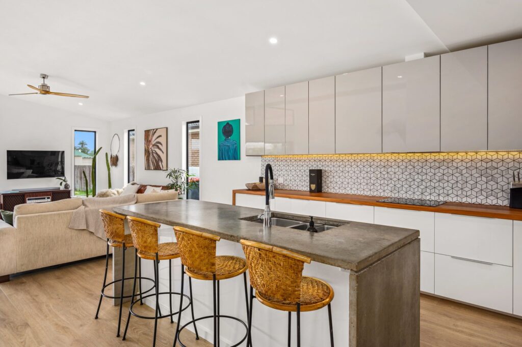 This project involved the complete renovation of an older Swansea property, turning it into a contemporary and highly functional family home. The scope of work covered major internal and external upgrades, including structural improvements and full layout reconfiguration. Inside, the home received a full refurbishment. Walls were repositioned to create a spacious open-plan living, kitchen and dining area with natural flow and generous light. The kitchen was redesigned with modern finishes, a feature island bench, and updated appliances to suit the client’s lifestyle. Both bathrooms were fully rebuilt with new tiling, fixtures, and premium fittings that introduce a fresh, clean aesthetic. The renovation extended to the outdoor living spaces, where a new deck, upgraded landscaping, and an alfresco entertaining area transformed the property’s functionality. These areas were designed to blend interior comfort with outdoor relaxation and family use. This project showcases a balanced mix of structural skill, design refinement, and practical upgrades, delivering a renovated home that feels modern, inviting, and ready for many years of enjoyment.